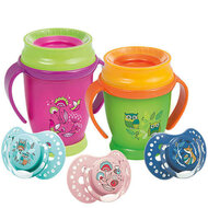 Since LOVI 360° Cup is not a non-spill cup, its protective cap was designed so as to strictly adhere to the bottle walls, thereby preventing fluid spills while travelling, when the child does not use the cup.