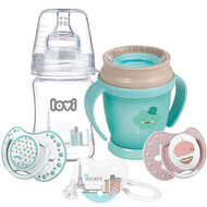 Standard training cups and LOVI bottles have the same thread width, so they are compatible and can be used with various spouts and teats. Cup holders match the LOVI bottles.
