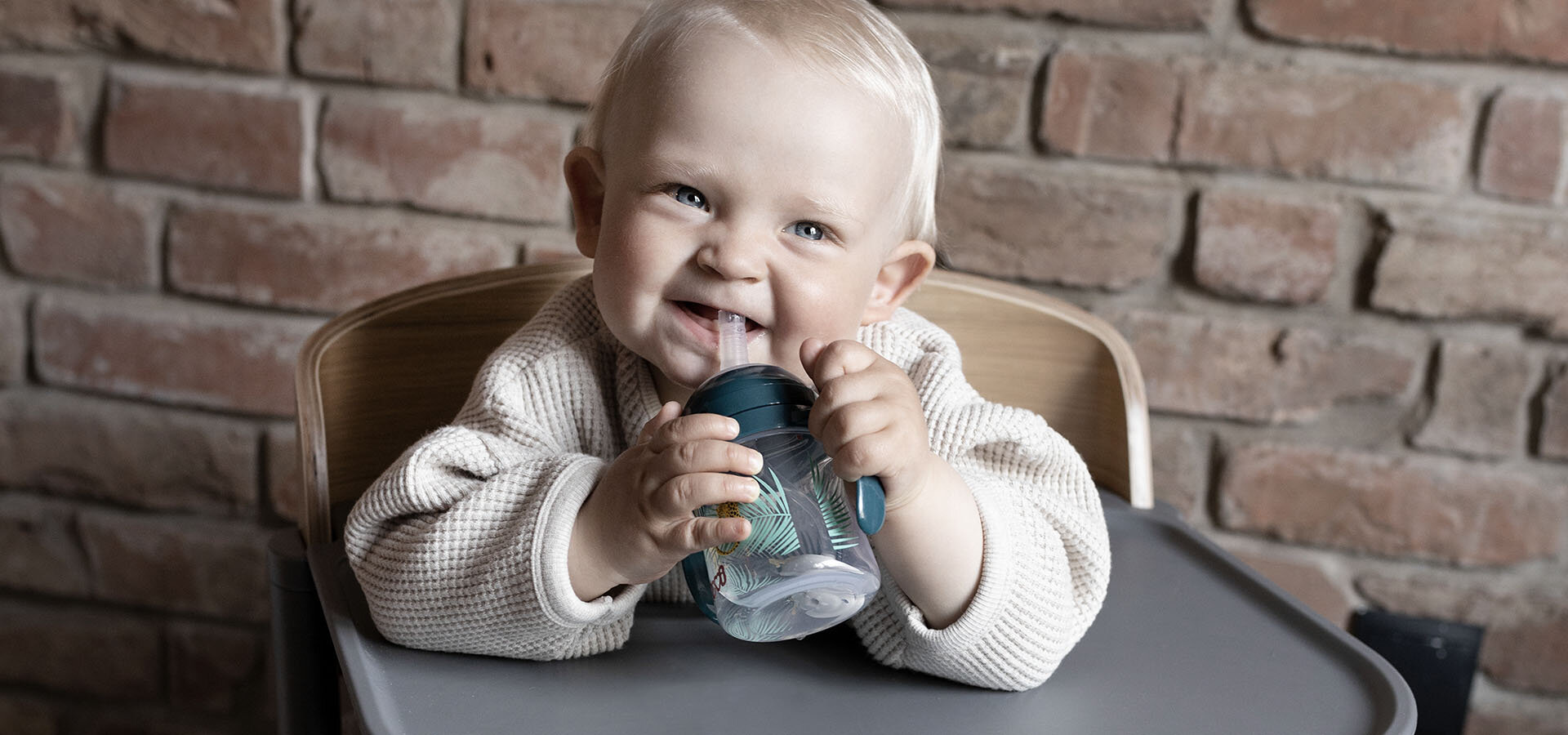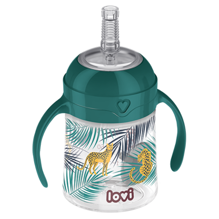 LOVI První hrneček se slámkou a závažím je určen pro nejmenší děti (6m+), které poprvé zkoušejí pít z brčka. Jemná, pružná slámka správného průměru a délky nedráždí patro a dítě ji snadno uchopí. Slámka se závažím bezpečné velikosti se pohybuje s nápojem a umožňuje pít volně z jakéhokoli úhlu. Malá velikost hrnečku (150 ml) a odnímatelný uzávěr umožňující pití ze všech stran z něj dělají ideální hrníček pro děti, které se učí pít z brčka.