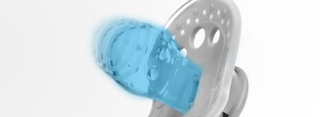 Dynamická špička je vyrobena z nestejnorodých vrstev silikonu, takže se prodlužuje a smršťuje v závislosti na rytmu sání dítěte.