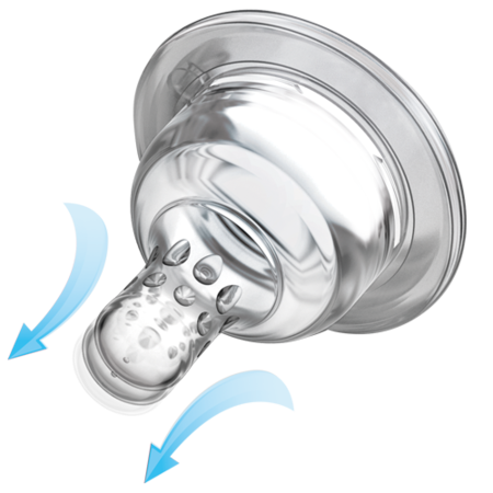 Nový, efektivní odvzdušňovací systém SUPER VENT zabraňuje smíšení mléka se vzduchem. Tímto způsobem se sniží riziko kolik.