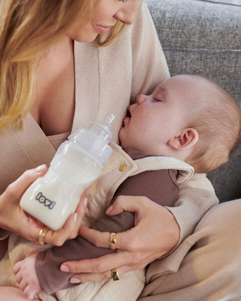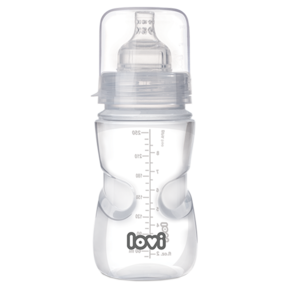Beginnen Sie langsam mit der Einführung von Mischkost. Ihr Kleines muss sich erst an die Flasche gewöhnen. Wenn Ihr Baby die Flasche verweigert, beziehen Sie Ihren Partner in den Lernprozess mit ein. Ihr Baby assoziiert Sie vielleicht mit der Brust, und es kann einfacher sein, wenn jemand anderes ihm die Flasche gibt. Wählen Sie außerdem eine Flasche, die für die kombinierte Fütterung empfohlen wird. LOVI-Flaschen haben einen einzigartigen Silikonsauger, der die Mundmuskeln mobilisiert und die richtige Arbeit der Lippen- und Zungenmuskeln gewährleistet. Er ermöglicht die Aufrechterhaltung des richtigen Saugrhythmus und erleichtert die Mischfütterung.