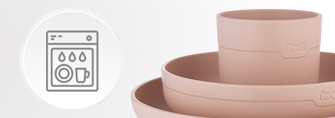 LOVI-Geschirr ist sehr leicht zu reinigen, da es keine Ecken und Kanten hat, kann das Geschirr leicht von Hand, aber auch in der Spülmaschine gereinigt werden.