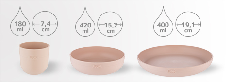 Das LOVI-Geschirrset enthält eine Schüssel, einen Teller und eine Tasse, also alles, was notwendig ist, um die Ernährung des Kindes zu erweitern. LOVI Tableware sind ideale Produkte für das Essenstraining - die Schüssel und der Teller sind für eine Vielzahl von Gerichten geeignet und die Tasse ist perfekt, um das Trinken aus einer offenen Tasse zu lernen.