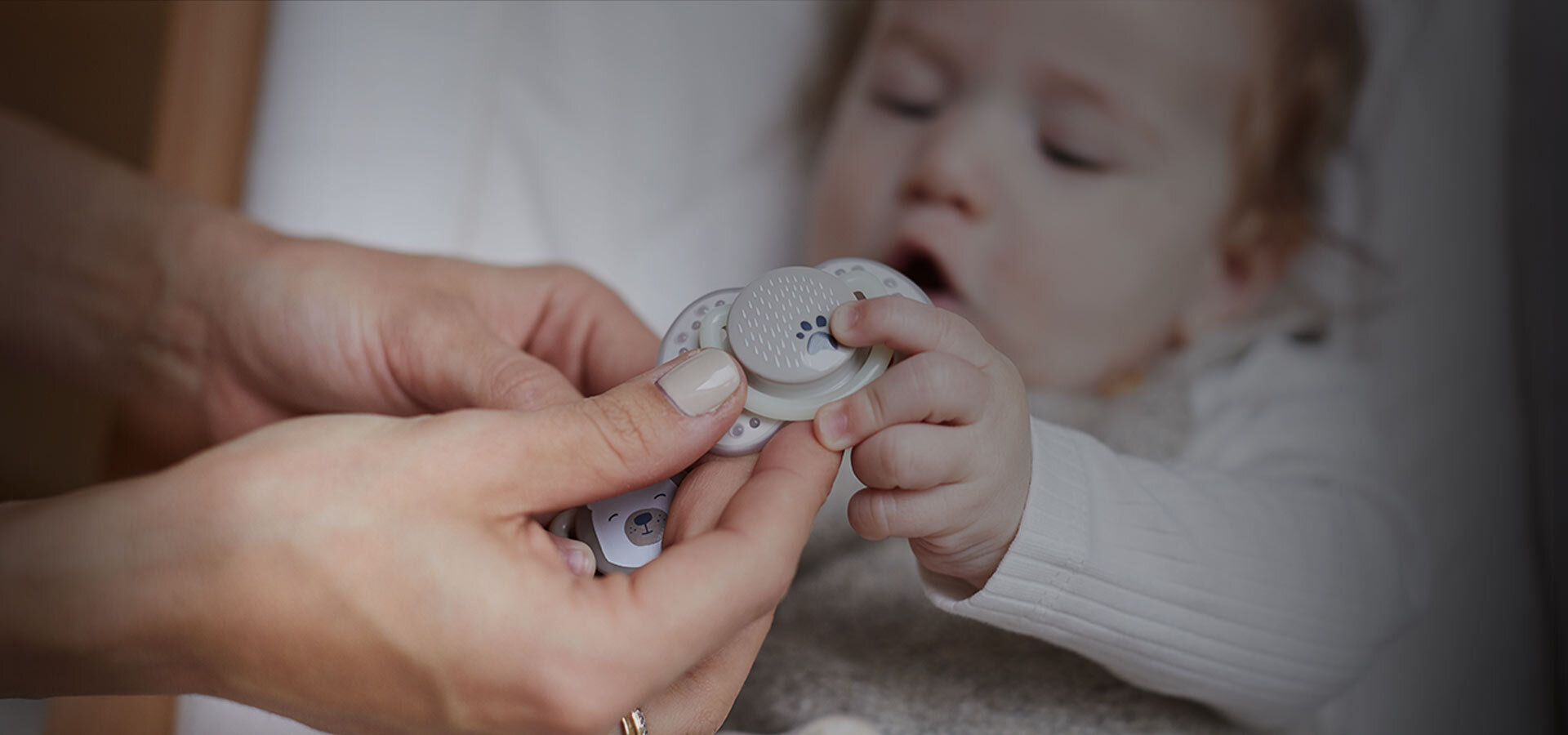 Using a soother requires hygiene and protection. You should use a soother when the baby wants to suck on the thumb. Soother should be given to the baby for no longer than 2 hours a day. Regular cleaning and scalding required. Do not hang the soother around baby's neck to eliminate the risk of smothering. Using a special soother holder or a container for soothers is recommended.