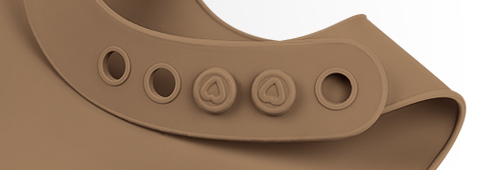 Ermöglicht das Anpassen des Lätzchens an den Hals des Kindes.