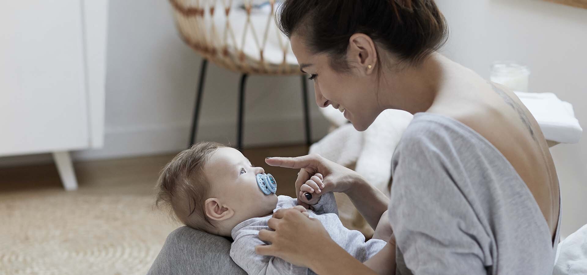 LOVI Dynamischer Schnuller aus Silikon®, entwickelt mit Hilfe von Neurologen. Einzigartiges Design: heterogenes Silikon und symmetrische Form, inspiriert von der Brustwarze. Stört nicht den Saugreflex und die natürliche Entwicklung von Sprache und Bissmuster*.