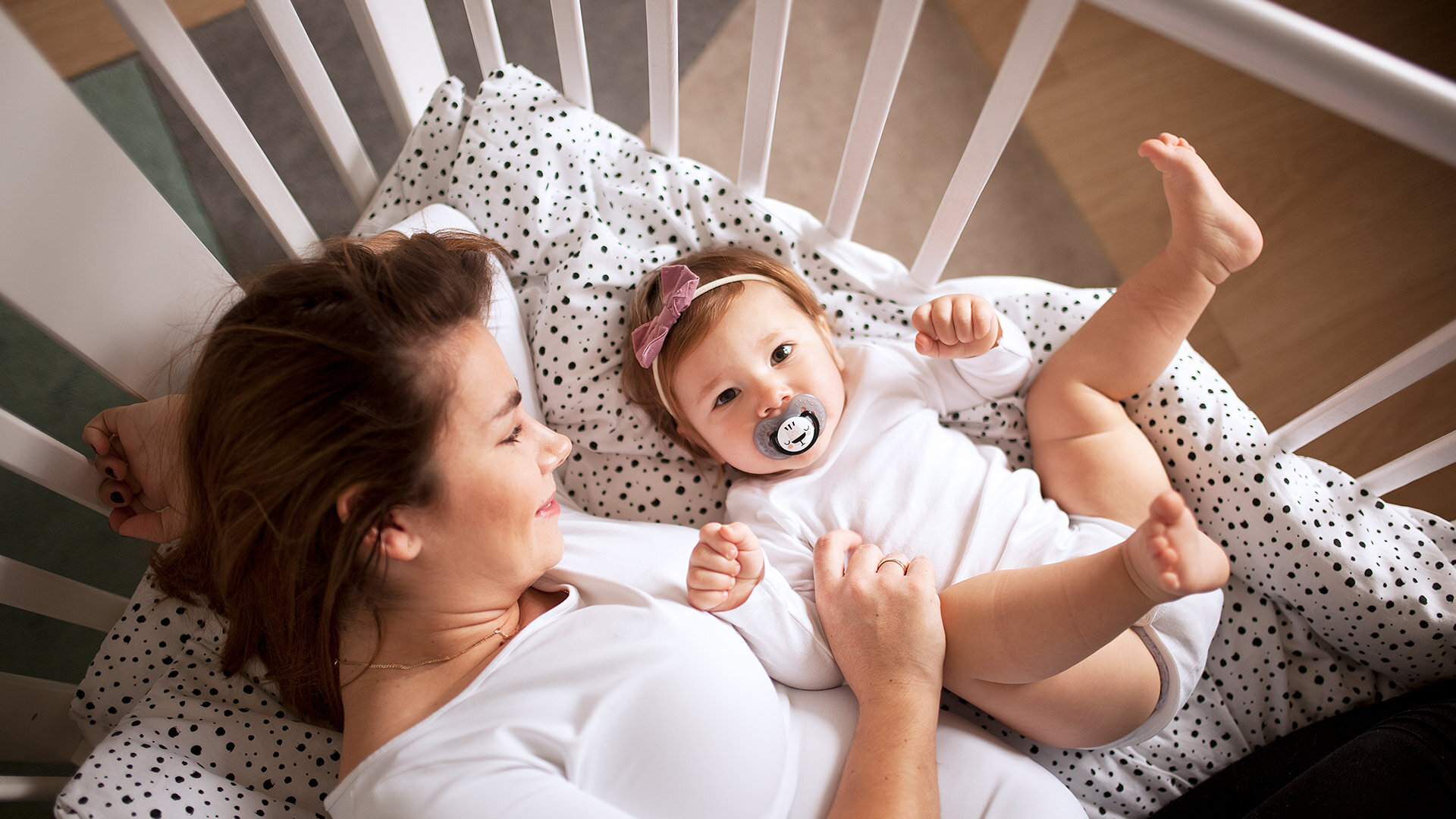 Erleichtert das Greifen und Übergeben des Schnullers an das Kind.