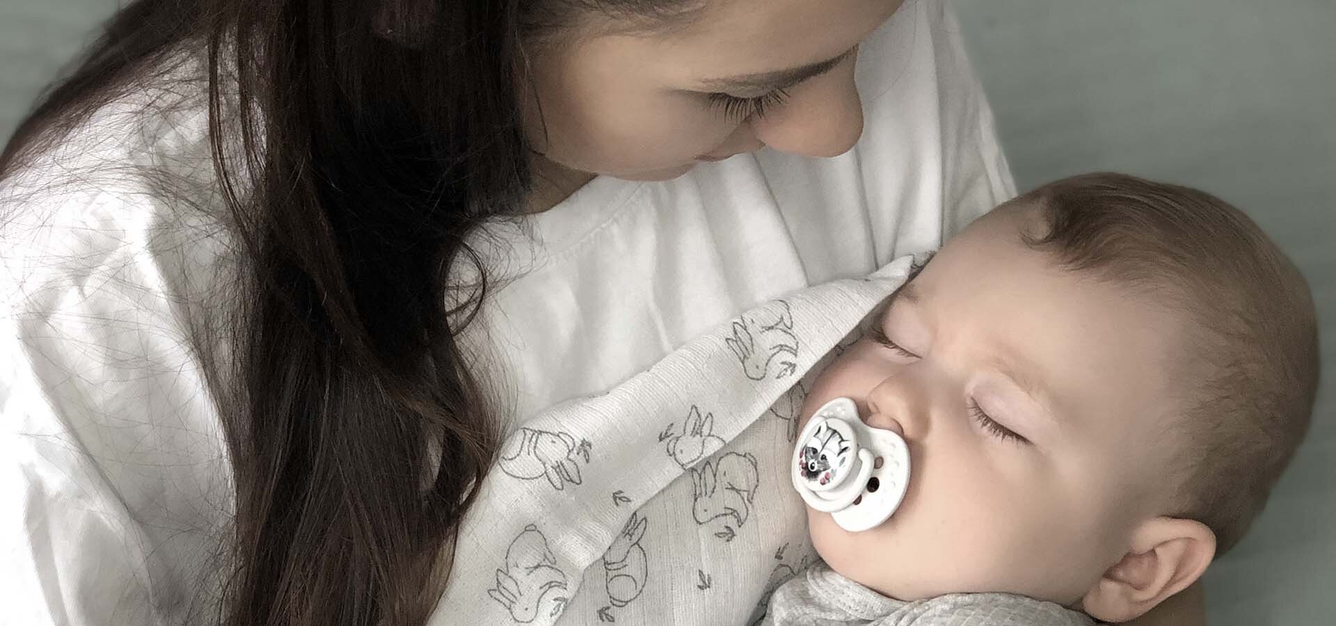 Chupete dinámico de silicona LOVI® diseñado con la ayuda de neurologopedistas. Diseño único: silicona heterogénea y forma simétrica inspirada en el pezón. No perturba el reflejo de succión y el desarrollo natural del habla y patrones de mordida*.