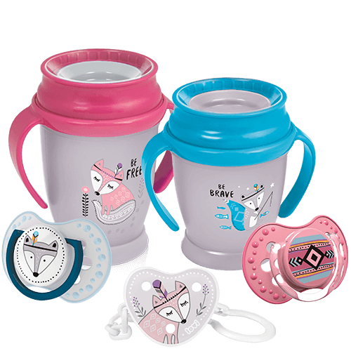 • Tazas 360°,  son el siguiente paso para enseñarle al bebé a beber, después de una taza de entrenamiento y tazas antigoteo. Enseña a beber de una taza sin derramar. Gracias a su innovador sistema de sellado, el bebé puede succionar líquido de cualquier área alrededor del borde.