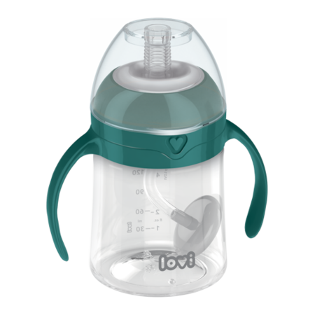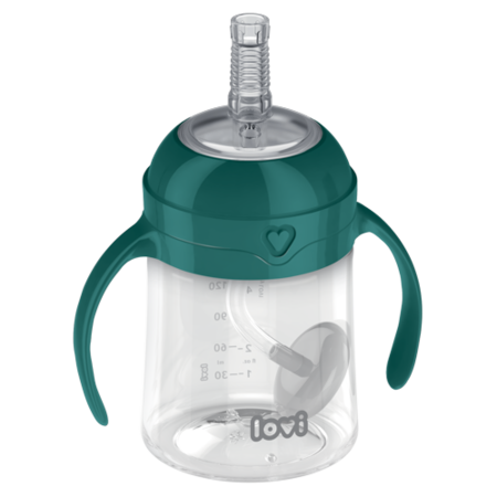 LOVI First cup with weighted straw is a cup for the youngest children (6m+) who make their first attempts to drink from a straw. A delicate, flexible straw of a right diameter and length does not irritate the palate and is easy to grab by a child. A safe-sized weigthed straw follows the drink and allows to drink freely from any angle. The small size of the cup (150 ml) and the removable cap that allows drinking from all sides make it an ideal cup for children who learn to drink from a straw.