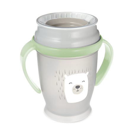 LOVI 360° Cup is the next step in teaching the baby to drink, after a training cup and non-spill cups. It teaches how to drink from a cup without spilling. Thanks to its innovative sealing system allows the baby to suck fluid from any area around the edge.