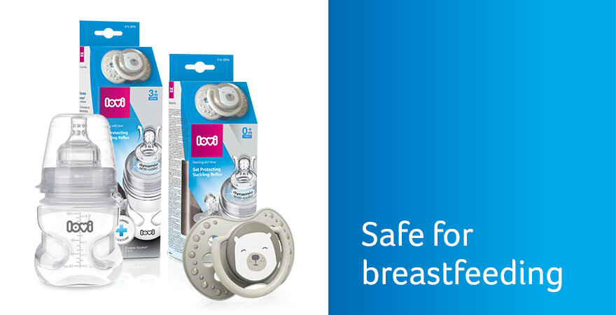 • LOVI Dynamic Feeding Teat - an effect of cooperation with speech and language therapists. Designed in a uniqe technology of heterogeneous layers of silicone. The teat has a soft tip, that expands and contracts according to the babies suckling rythm, enabling active training of the speech apparatus muscles, and a firm, wide base, which allows stable, wide positioning of lips - similar to when suckling on mothers breasts. Thanks to that, the feeding teat does not impede the suckling reflex which makes it safe for breastfeeding.