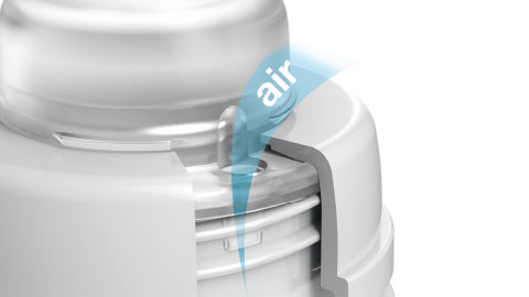 Nauja, veiksminga SUPER ventiliuojamosios angos sistema neleidžia pienui maišytis su oru. Šitaip sumažinama dieglių rizika.