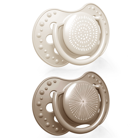 Благодаря особому материалу — неоднородному силикону — пустышка растягивается и сжимается в такт сосанию, как материнский сосок. А схожая с ним симметричная форма дополнительно усиливает эффект.