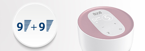 9 úrovní výkonu vo fáze stimulácie 9 vo fáze odsávania Celkove 18 úrovní